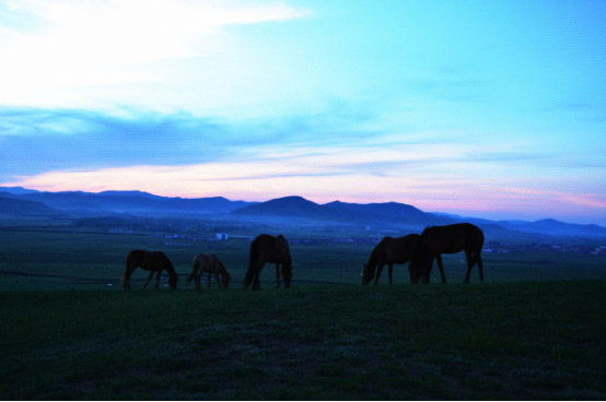 休息了一晚后第二天大家都早早的醒了,几个勤快的同事,4点半就早起去看了日出,几匹马也早早地在山上吃草,早起的马儿有草吃,呵呵。